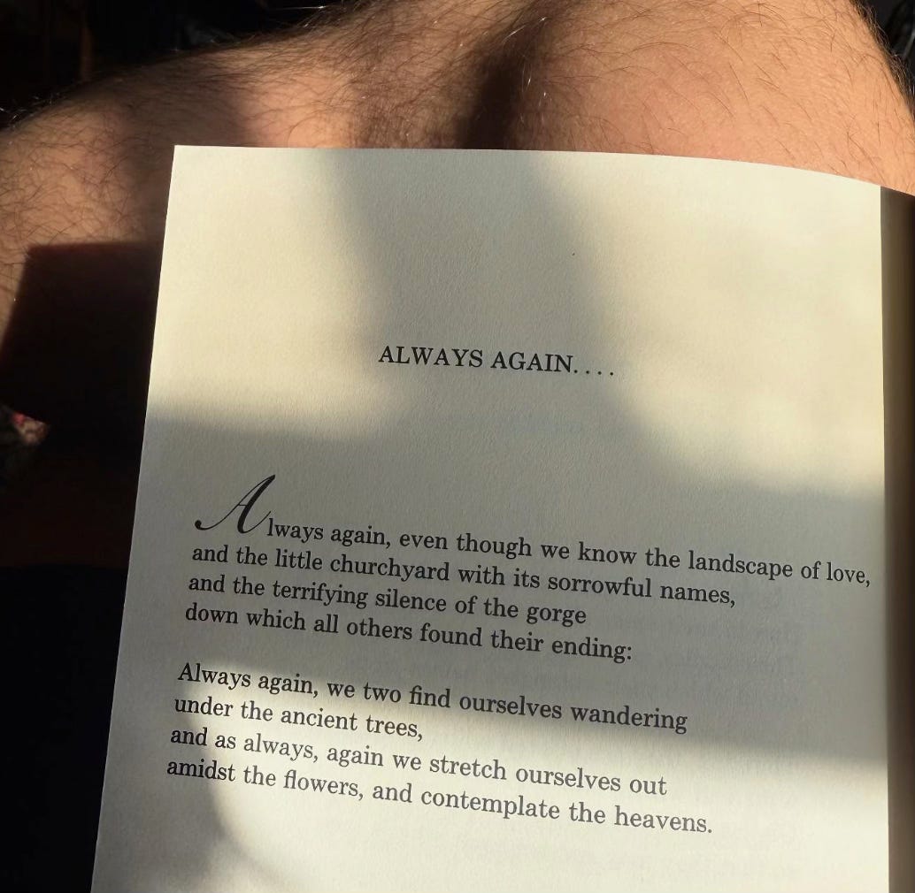 Jimmy snapped pics of Rilke poems and envisioned reading them to his crush by the creek in Eaton Canyon. He was 15 minutes late. “We said 2PM,” she texted at 2PM. Jimmy smiled and turned up the tunes in his 1999 Creme Beeme knowing that if he had been on time she would have given him shit for being too punctual. That’s what he liked about her. She gave him shit for everything. He deserved it. “Her indifference is a performance for me in my ongoing movie, The plot of which resembles Alta Dena Tender Mercies,” Jimmy thinks... “Waldo Salt, its screenwriter, said there was no such thing as 'flash-backs' He called them “flash-presents” cuz when the past come back to haunt Joe Buck, the lonesome gigolo tormented by the hillbilly gang-raping of his ex-girlfriend a long time ago, it comes back —NOW— Jimmy flicks a cigarette onto Lake Avenue & Flips a Right Onto Their 2nd Date On New Years Eve, A Few Nights Ago: There’s Jimmy, asking to see pics of her dog with the curiosity of a child actor asking: who's been cast in the role of his own Son in the upcoming production “Is he a German Shepard?” “Yeah. Bet he won’t like you.” “Why? Because he’s German?” “Actually, he was raised by my dad, who was a Nazi. But that’s not why...” “Your dad’s too young to be a Nazi. Palmdale, wasn’t it? 1970-something?” “He was a skinhead in Palmdale in the 70s and 80s.” “Not quite a nazi, but I get the picture.” “No, I don’t think you do.“ “My own great-grandpa may-or-may-not have been a member of the KKK. It happens.“ “No, you don’t un-” “I do understand. There are many men in the world full of rage who join clubs promising a place for them to belong.” “Okay… so you do get it…” “I do,” whispers Jimmy, ever-so-preciously. “Is he still a Nazi?” “No, he’s Born Again.” “Good for him.” “Yeah?” “Yeah. Jesus was the greatest and most annoying Jew of all time.” “Why don’t you evoke some of His benevolence, get your hands out of my asscrack and grab me a drink?” “How would your Nazi father feel about you getting felt up on the ritzy patio of a Hollywood manor by a half-jew rat on New Years Eve?” “He’s met worse.” “Worse?" +_+